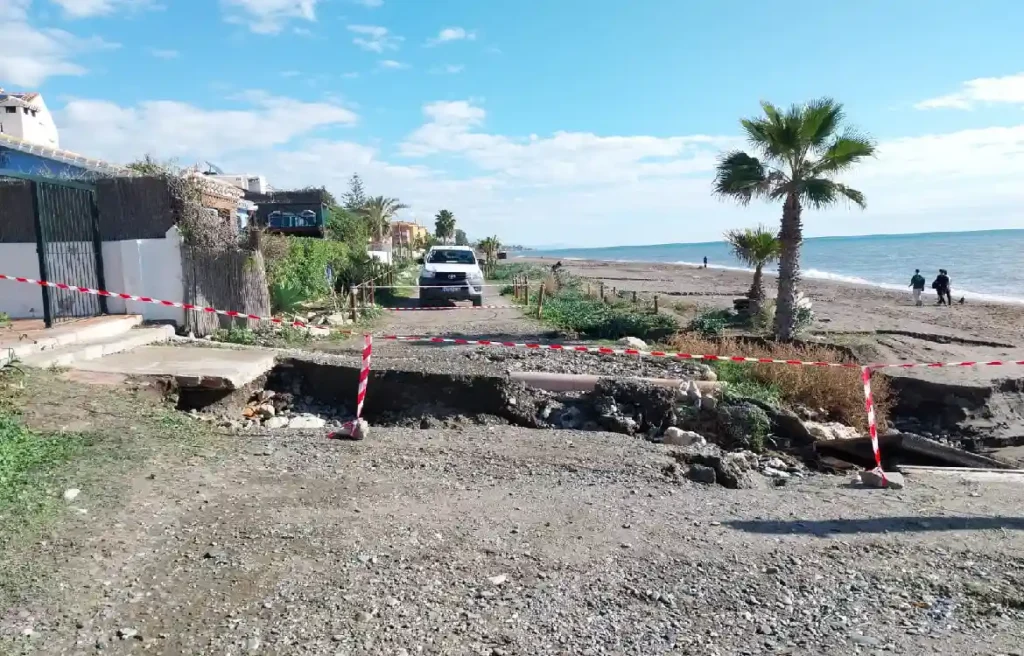 Los fenómenos meteorológicos adversos provocaron importantes daños a lo largo de todo el litoral del municipio. Entre las afecciones registradas se encuentran escorrentías que deterioraron el itinerario peatonal de la senda litoral, aterramientos en desembocaduras de arroyos, descalce de elementos de contención e infraestructuras públicas, así como daños en equipamientos de playa y en la barandilla de protección situada junto a la hornacina de la Virgen del Carmen.