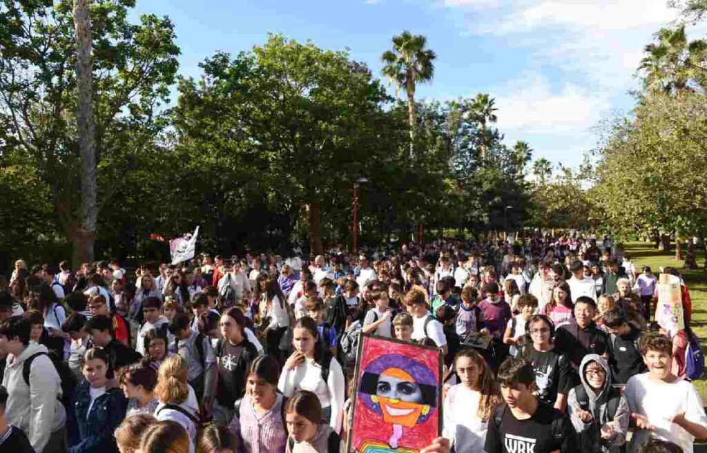 El acto ha contado con la presencia de cerca de mil jóvenes, que han realizado lecturas de manifiestos, actuaciones musicales y coreografías en las que han expresado su compromiso por un futuro libre de violencia en el auditorio, donde los centros educativos han participado de una y otra forma mostrando el trabajo que han realizado semanas atrás con motivo del 25N y la violencia machista.